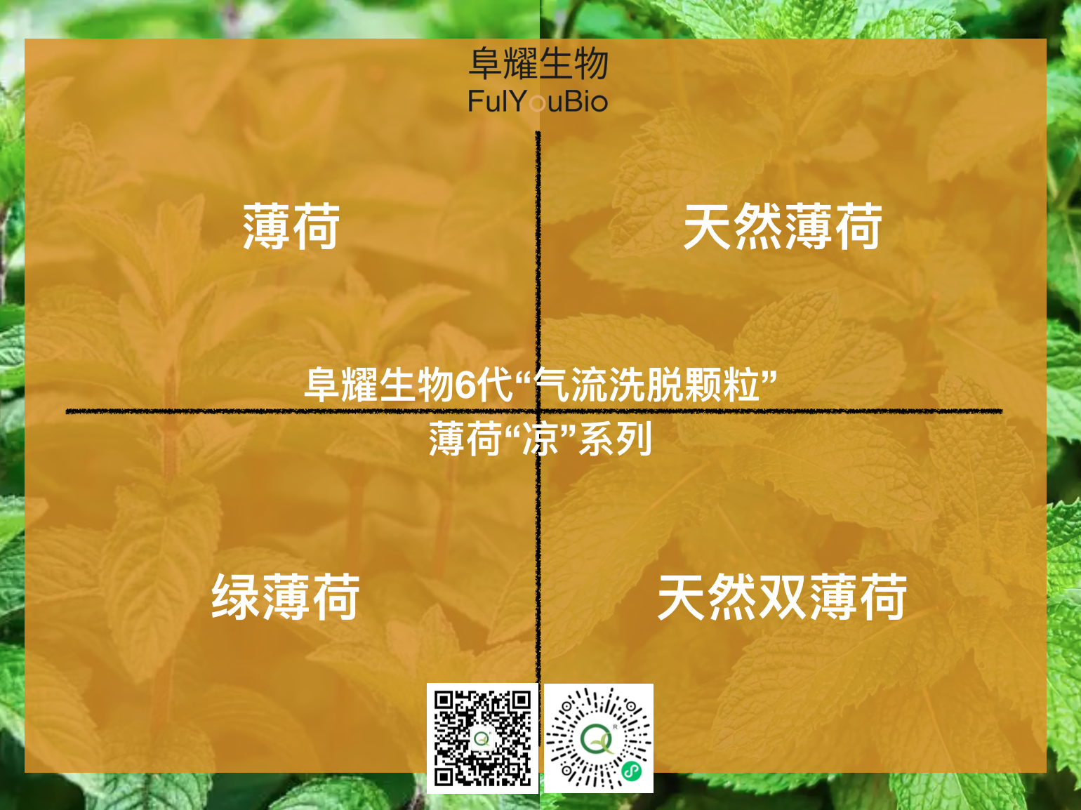 阜耀生物6代技术的薄荷“凉”系列,在继承前5代技术的基础上,围绕全球市场风味偏好,对薄荷凉这个系列进行了细分管理,让不同的薄荷味实现与不同国家的烟气协同,真正做到“过滤吸附,优化风味”。
