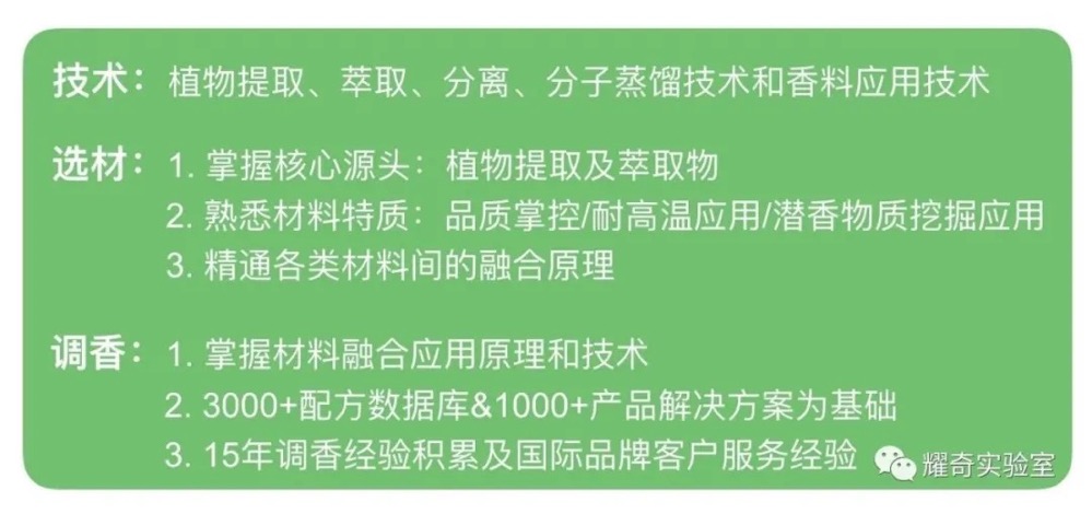 新物质+新工艺+新配方=高护城河:持续从植物中挖掘新物质,引进新技术创新工艺,专注“香&味”的综合体验研究,以打造独特记忆点为目的创新配方。帮助品牌客户实现“人无我有,人有我优”。