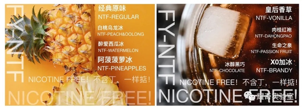 FY-NTF新型雾化液(NTF:NICOTINE FREE),是阜耀生物FulYouBio的“无尼古丁解决方案”在电子雾化类的创新应用,是耀奇实验室耗时一年,通过植物提取/萃取/分子蒸馏等技术,从百种天然植物/食品级材料中筛选出的植物提取物,叠加新工艺和配方,形成的全新解决方案。