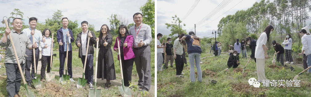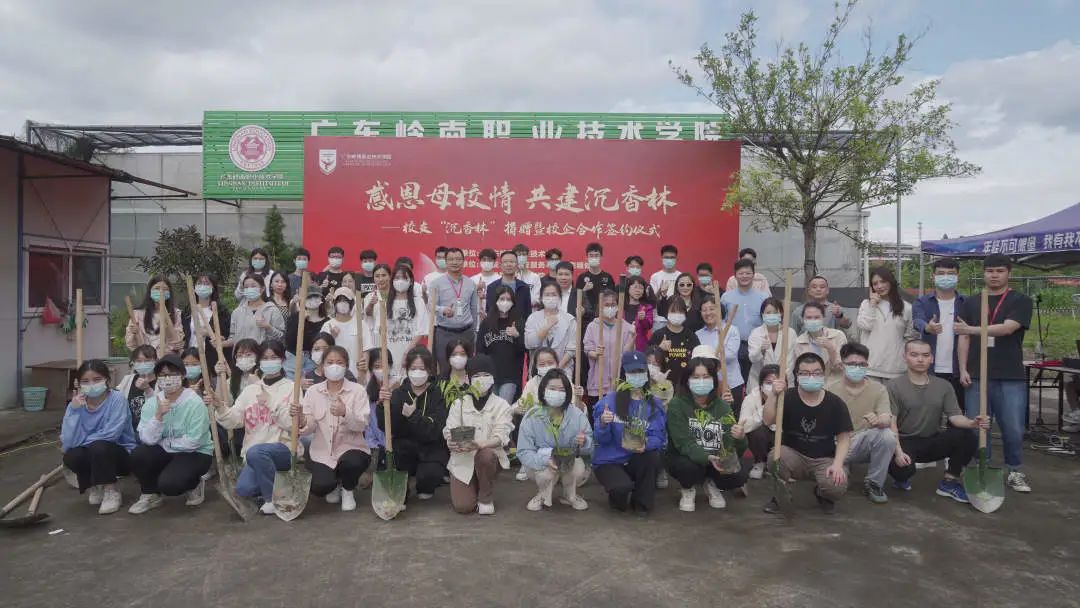 阜耀生物向岭南学院药学院捐赠百棵沉香树苗,并与校方领导、师生共同植入药学院药用植物园中,助力药学院开展名贵药材沉香的种植、教学、研究、创新应用相关工作。
