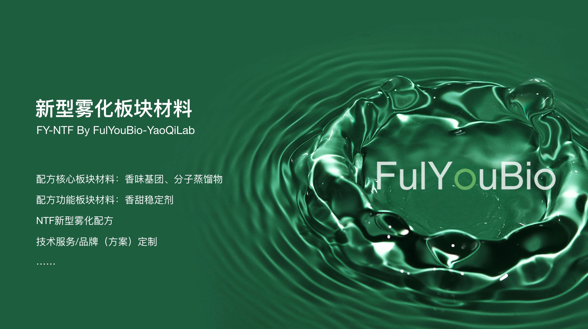 围绕“天然健康、减害增效、功能化”发展趋势及方向,以及全球电子烟企业/品牌发展需要,提供电子雾化产品配方相关板块材料、定制开发和技术服务 ,以独有的材料、技术和经验优势,助力新型烟草/电子烟企业/品牌自主创新和持续发展。