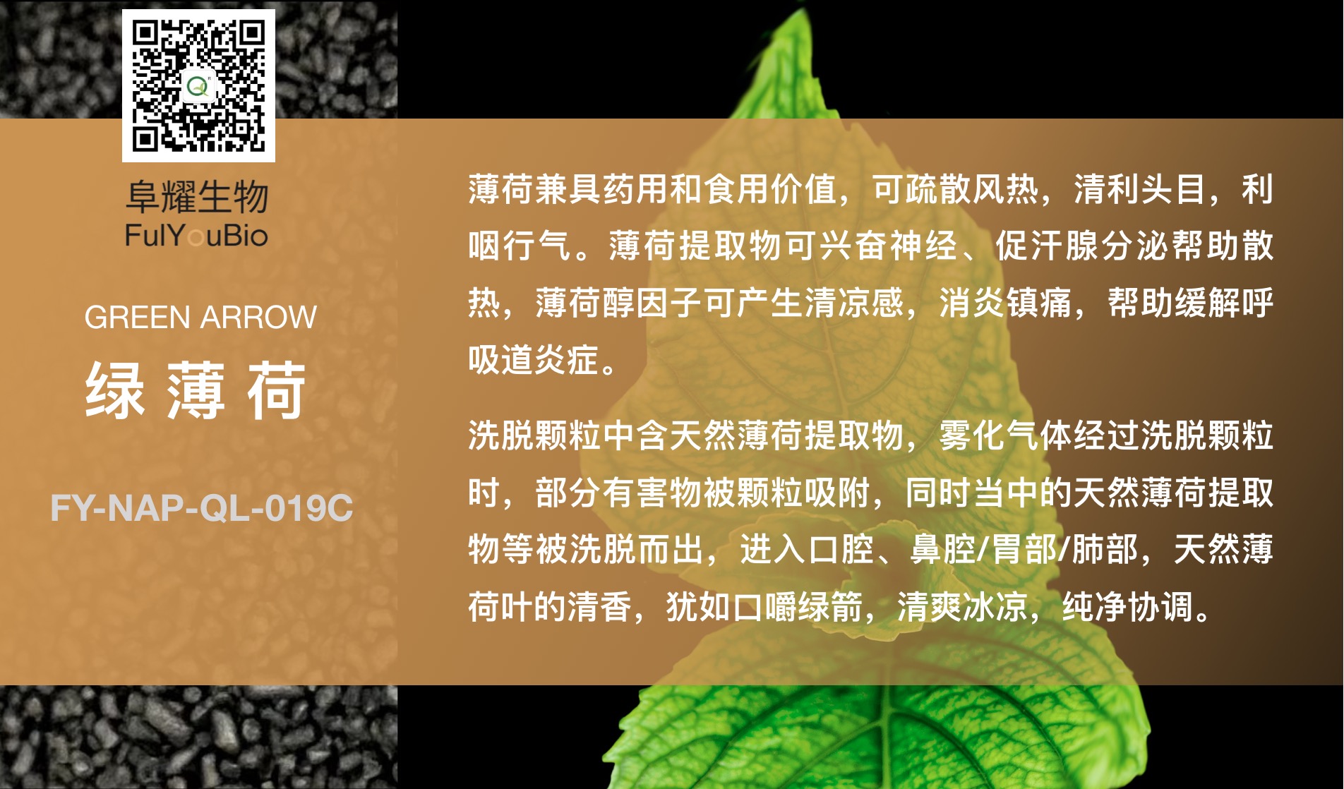 阜耀生物FulYouBio专研烟用滤嘴专用颗粒材料,精选天然植物材料、食品级香料及药食同源植物提取物,经粉碎研磨、调香应用、精细造粒等多重工艺流程和技术,研制而成的新型洗脱颗粒,可广泛应用于传统卷烟、电子烟、雪茄等领域的滤嘴产品中,少量即可帮烟用滤嘴产品一次性实现吸附有害物、丰富风味、增强体验等多重功能。