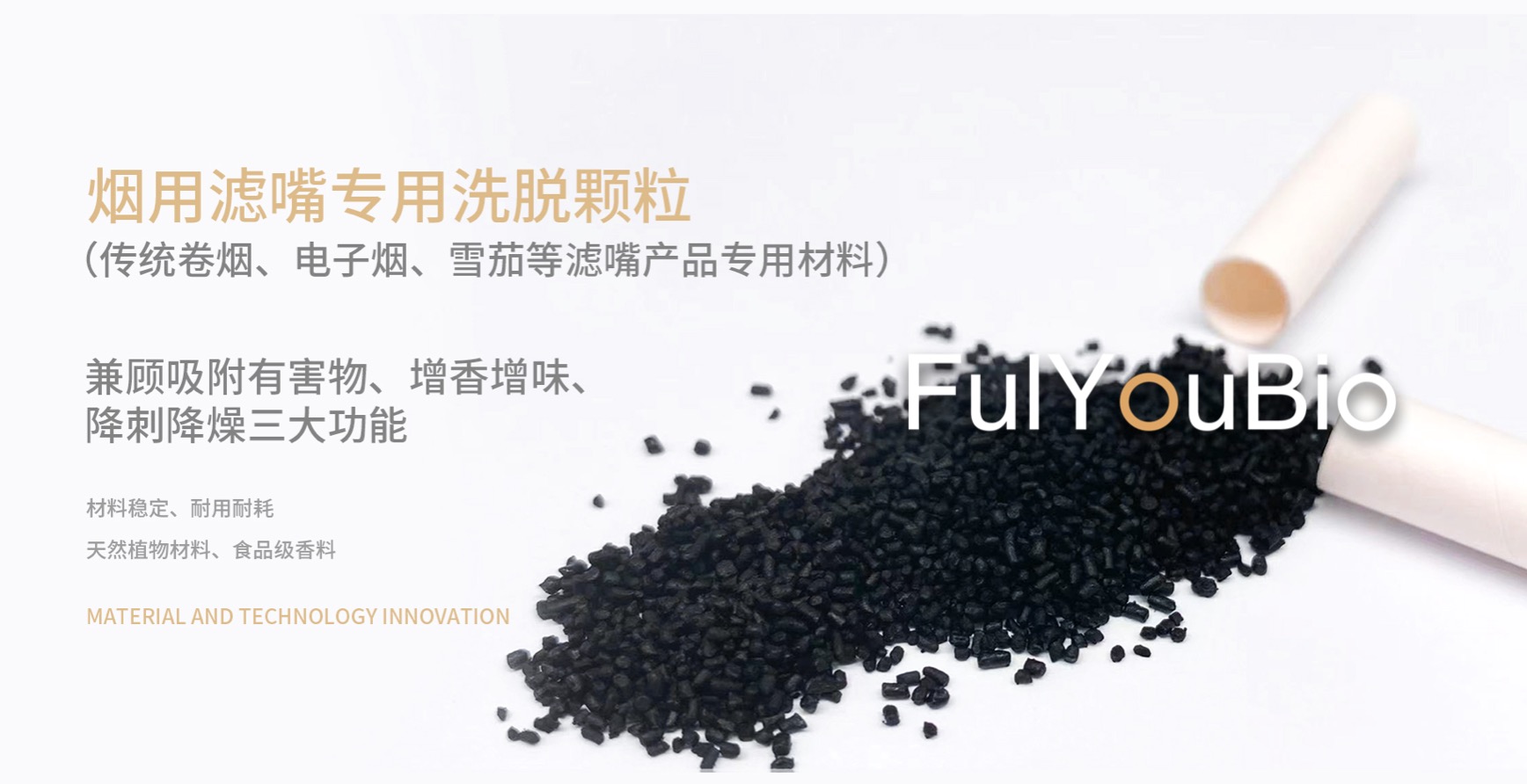 全球化,新格局,新进程,新思路。阜耀生物FulYouBio烟用滤嘴专用洗脱颗粒材料,为传统烟草/电子烟产业产品革新赋能。