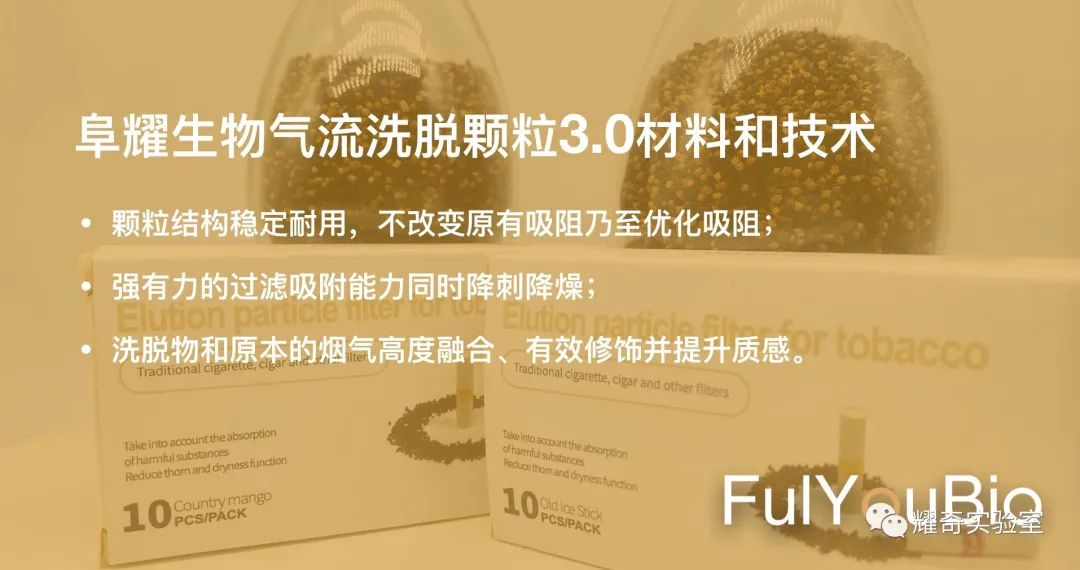 以上烟用滤嘴材料技术难点,阜耀生物的气流洗脱颗粒材料和技术均已解决。