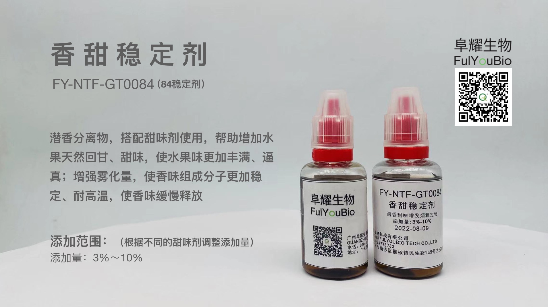 雾化配方材料和技术升级,从FY-NTF-GT084X 香甜稳定剂开始!