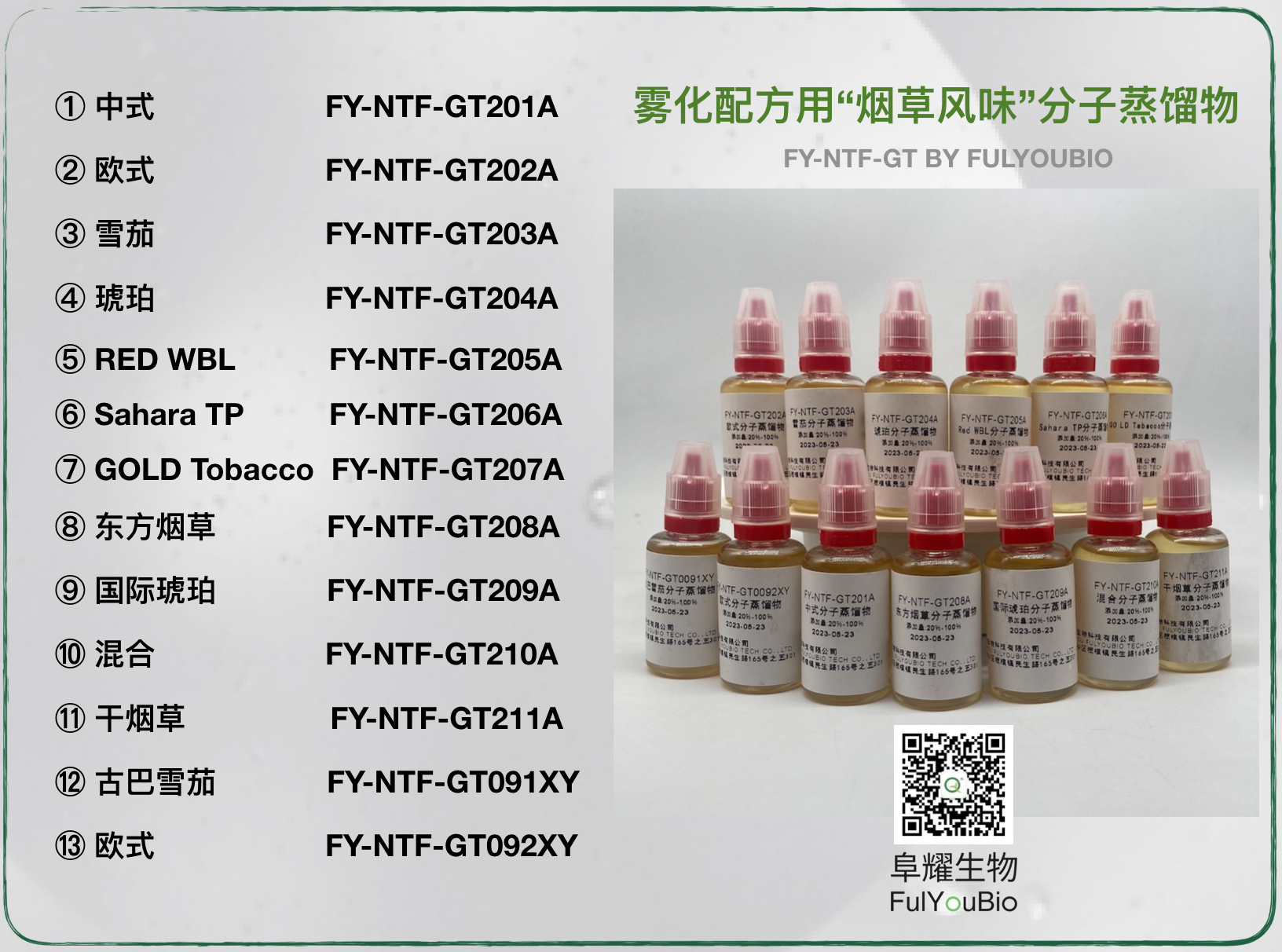 匹配上一期的13款“烟草风味”香味基团,本期我们推出13款“烟草风味”分子蒸馏物,调香师可按比例添加到雾化配方中,也可直接作为溶剂使用。