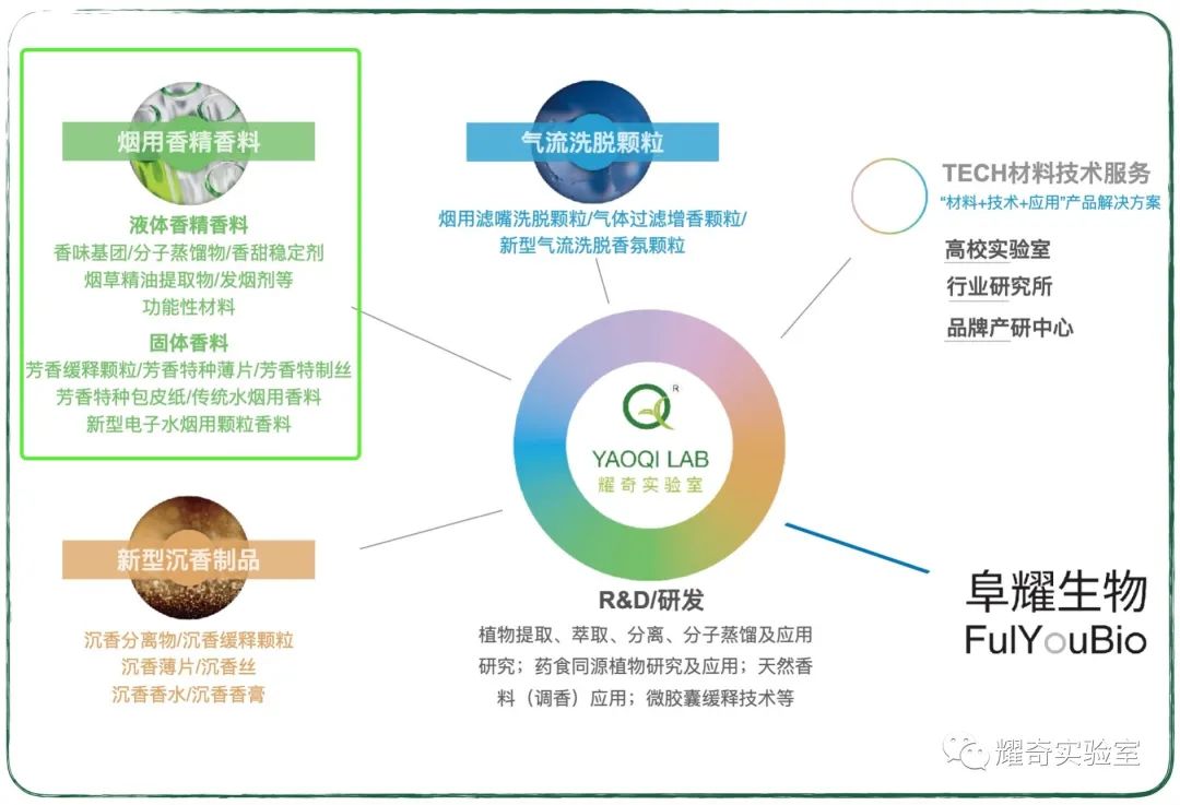 烟用香精香料作为雾化配方的重要材料,是阜耀生物的核心板块之一,该板块主要致力于为电子雾化、新型烟草客户提供基础/功能性/板块材料和技术,助力客户打造自主品牌和竞争力产品。