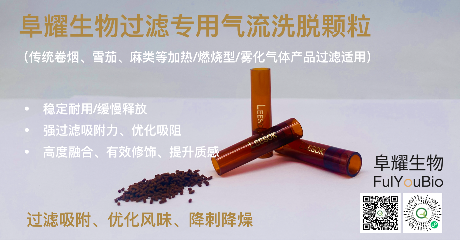 在过滤段,传统卷烟通过加爆珠、活性炭,以及“气流洗脱滤嘴颗粒”,实现降焦减害和调味增香,我们首创的“气流洗脱滤嘴颗粒”兼顾了前面二者的功能,并且能稳定持久进行过滤和优化风味,正逐步成为优选方案。
