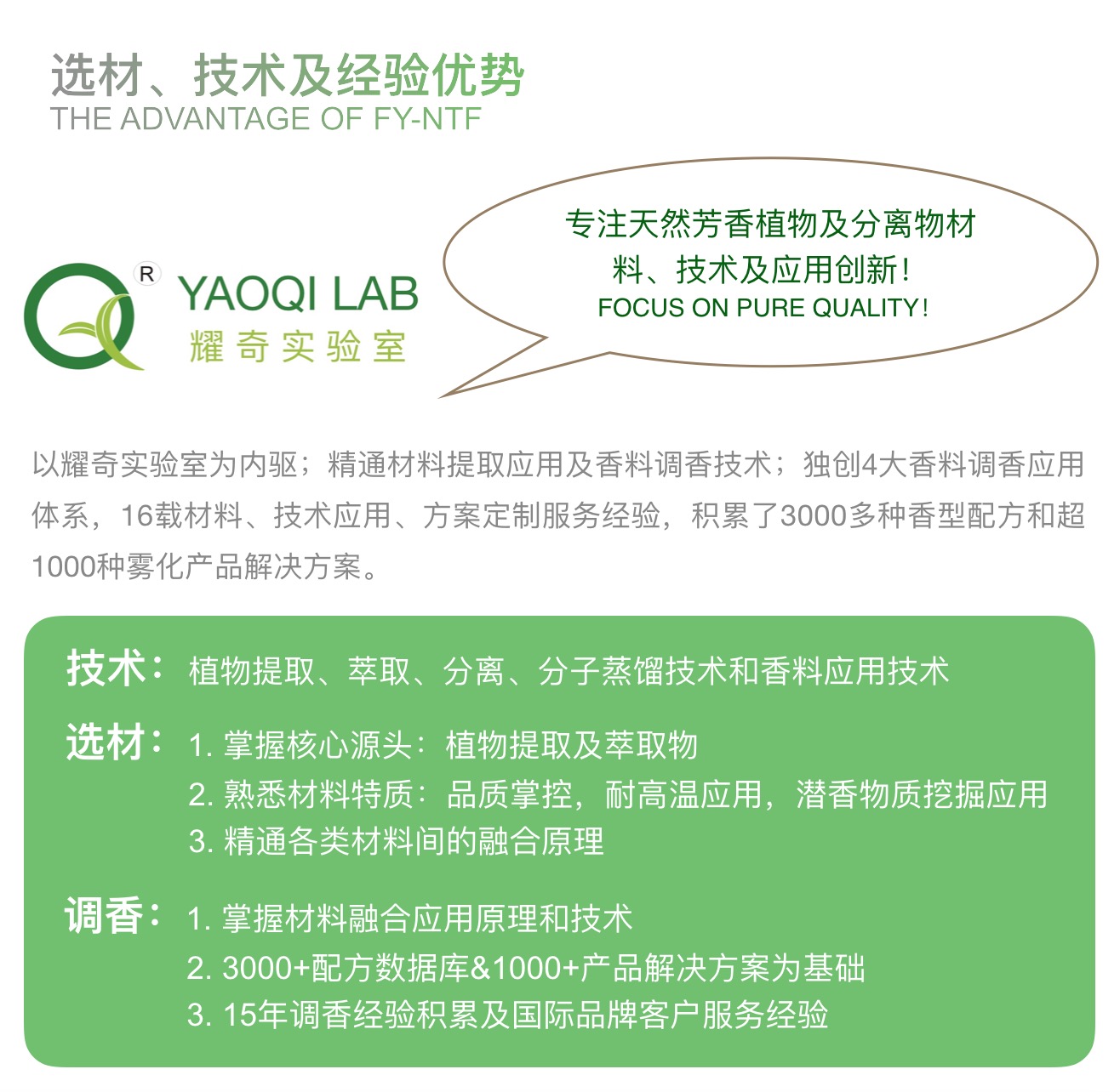 围绕“天然健康、减害增效、功能化”发展趋势及方向,以及全球电子烟企业/品牌发展需要,提供电子雾化产品配方相关板块材料、定制开发和技术服务 ,以独有的材料、技术和经验优势,助力新型烟草/电子烟企业/品牌自主创新和持续发展。